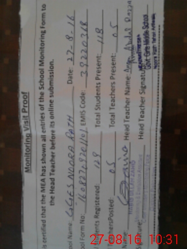 | EMIS Code: 39220368 | Name of School: GGES NOORA RATH NO.1 TEH.ARIFWALA | |||