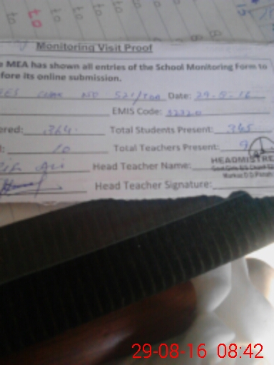 | Attendance Register | Head Teacher | MEA with School | Visit Proof |