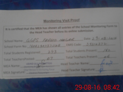 | EMIS Code: 39210372 | Name of School: GGPS MOHALLAH FAREED NAGAR | |||