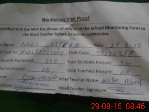 | EMIS Code: 39220358 | Name of School: GGHS 25 KB | |||