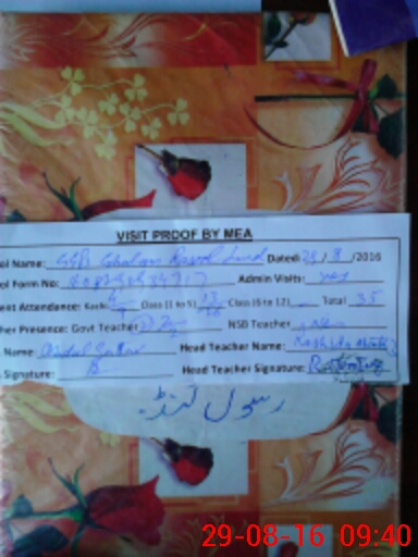 | Attendance Register | Head Teacher | MEA with School | Visit Proof |