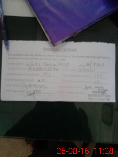 | Monitoring Date: 26-08-2016 | Start Time: 26-08-2016 10:45 AM | End Time: 26-08-2016 11:30 AM | Name of MEA: Sa**** Hu**** | |