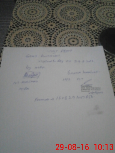 | Monitoring Date: 29-08-2016 | Start Time: 29-08-2016 09:32 AM | End Time: 29-08-2016 10:14 AM | Name of MEA: Mo**** Ar**** | |