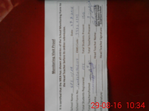| Certified that this School was Inspected by the Undersigned MEA/DMO Today and the Information Stated Above is as Per Record. | |||||