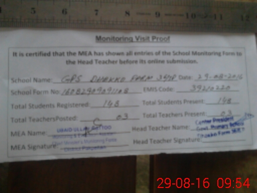 | EMIS Code: 39210220 | Name of School: GPS DHAKKO FARM CHAK NO. 36/SP SALAMAT PURA | |||