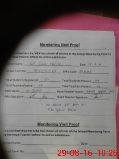 | Certified that this School was Inspected by the Undersigned MEA/DMO Today and the Information Stated Above is as Per Record. | |||||