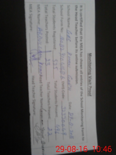 | Certified that this School was Inspected by the Undersigned MEA/DMO Today and the Information Stated Above is as Per Record. | |||||