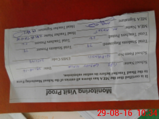 | Attendance Register | Head Teacher | MEA with School | Visit Proof |