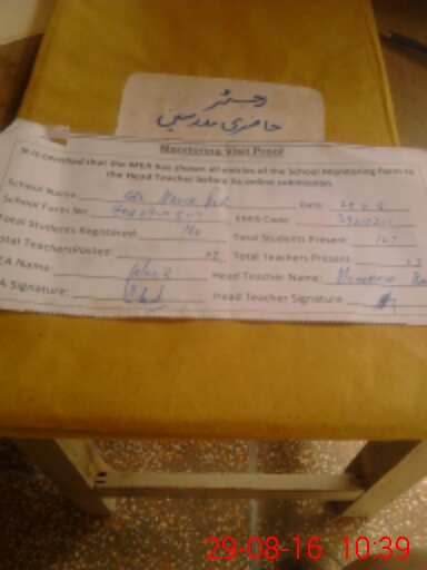 | Attendance Register | Head Teacher | MEA with School | Visit Proof |
