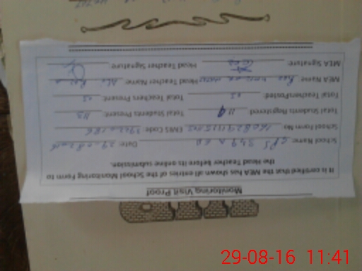 | Attendance Register | Head Teacher | MEA with School | Visit Proof |