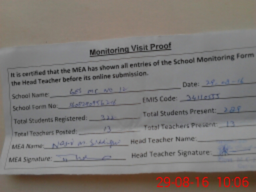 | Certified that this School was Inspected by the Undersigned MEA/DMO Today and the Information Stated Above is as Per Record. | |||||