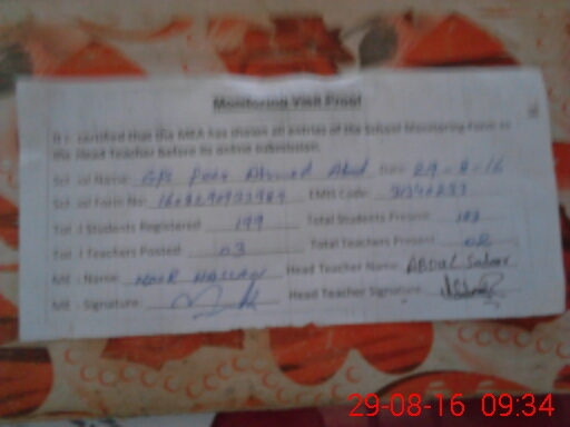 | EMIS Code: 31340233 | Name of School: GPS PEER AHMAD ABAD | |||