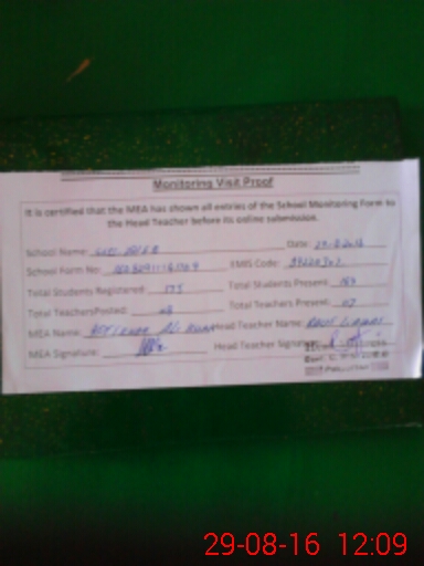 | Certified that this School was Inspected by the Undersigned MEA/DMO Today and the Information Stated Above is as Per Record. | |||||