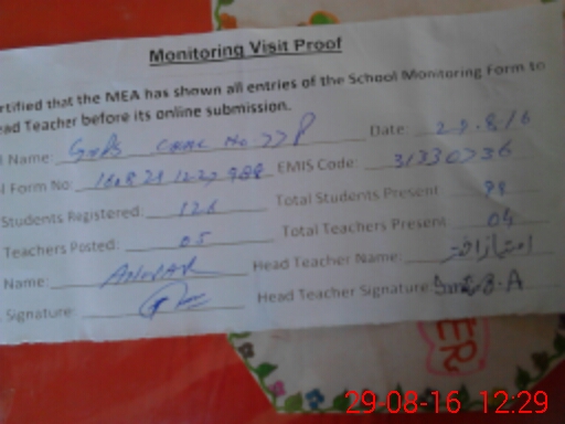 | Attendance Register | Head Teacher | MEA with School | Visit Proof |
