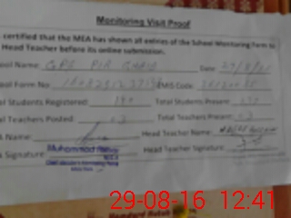 | Certified that this School was Inspected by the Undersigned MEA/DMO Today and the Information Stated Above is as Per Record. | |||||