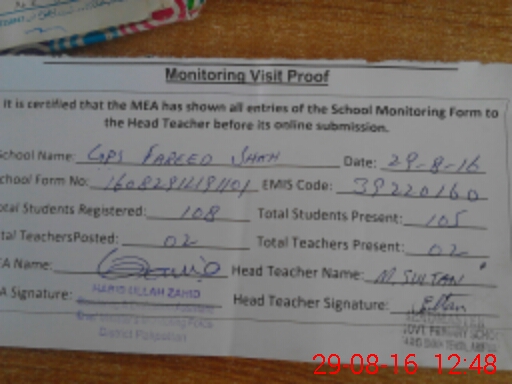 | EMIS Code: 39220160 | Name of School: GPS FARID SHAH | |||