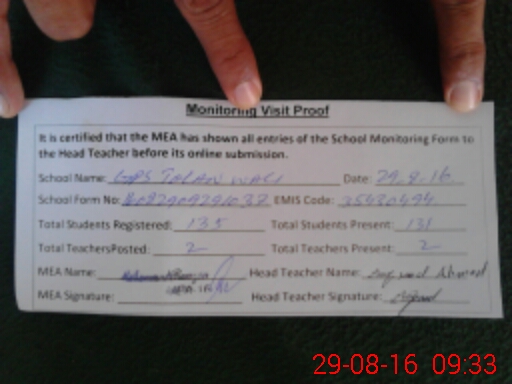 | Attendance Register | Head Teacher | MEA with School | Visit Proof |