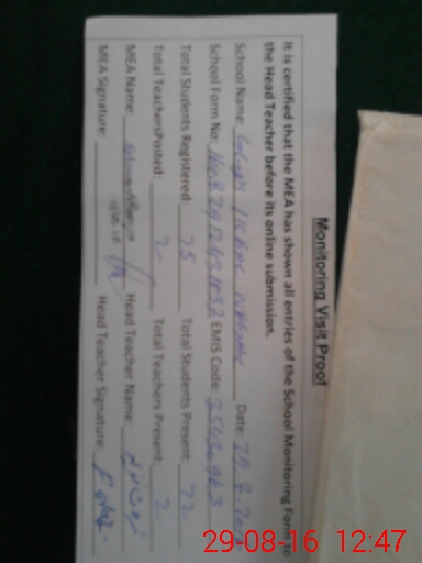 | Certified that this School was Inspected by the Undersigned MEA/DMO Today and the Information Stated Above is as Per Record. | |||||
