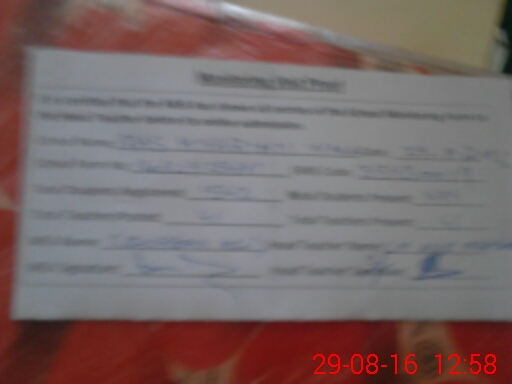 | Attendance Register | Head Teacher | MEA with School | Visit Proof |