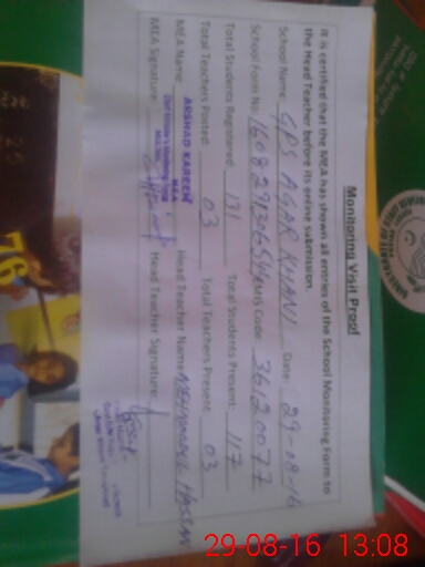 | EMIS Code: 36120077 | Name of School: GPS AGAR KHANI P.O AGAR KHANI MOZA RUKKAN HATI | |||