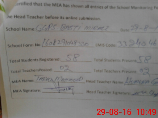 | Certified that this School was Inspected by the Undersigned MEA/DMO Today and the Information Stated Above is as Per Record. | |||||