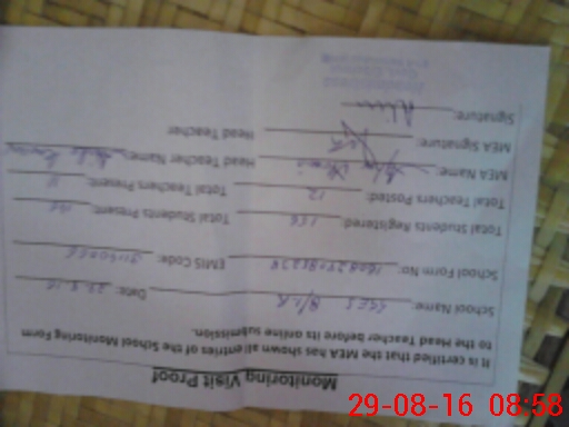 | Attendance Register | Head Teacher | MEA with School | Visit Proof |