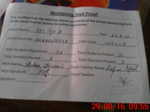 | Attendance Register | Head Teacher | MEA with School | Visit Proof |