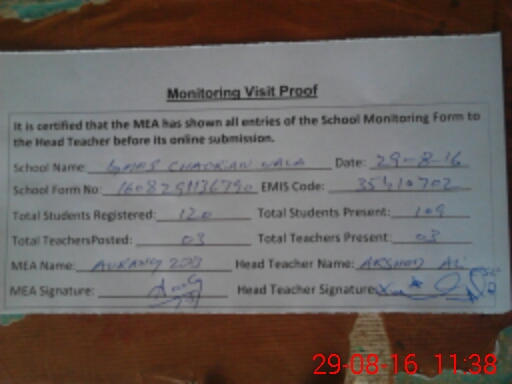 | Certified that this School was Inspected by the Undersigned MEA/DMO Today and the Information Stated Above is as Per Record. | |||||