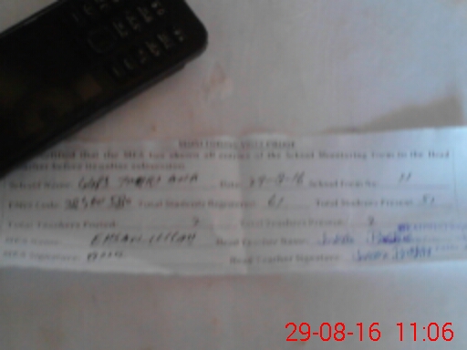 | Attendance Register | Head Teacher | MEA with School | Visit Proof |