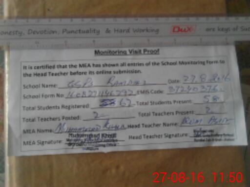 | Certified that this School was Inspected by the Undersigned MEA/DMO Today and the Information Stated Above is as Per Record. | |||||