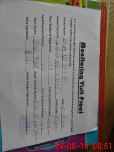 | Certified that this School was Inspected by the Undersigned MEA/DMO Today and the Information Stated Above is as Per Record. | |||||