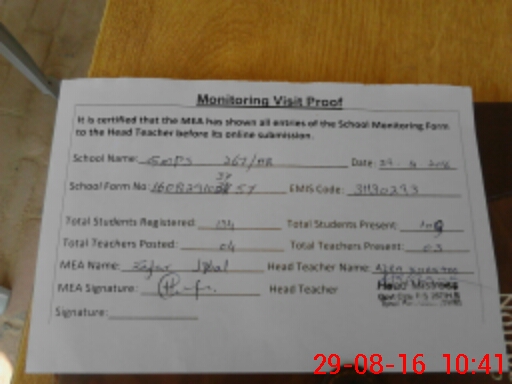 | EMIS Code: 31130293 | Name of School: GMPS CHAK NO 267 HR | |||