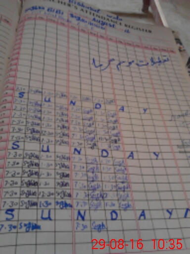 | CNIC | Full Name | Designation | R/C | Absence During Last Calender Month |