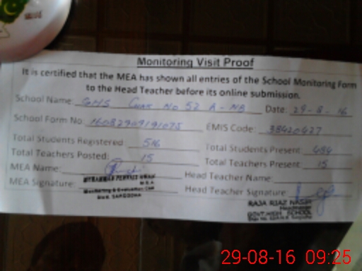 | EMIS Code: 38420427 | Name of School: GHS CHAK NO.52 ANB | |||