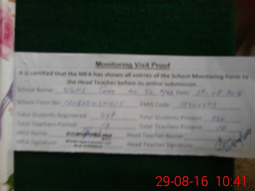 | Certified that this School was Inspected by the Undersigned MEA/DMO Today and the Information Stated Above is as Per Record. | |||||