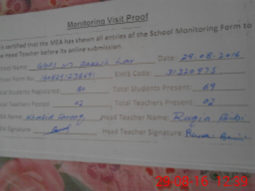 | EMIS Code: 31320975 | Name of School: GGPS MUHAMMAD BUX LAR | |||