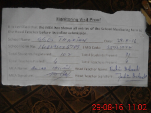 | Certified that this School was Inspected by the Undersigned MEA/DMO Today and the Information Stated Above is as Per Record. | |||||
