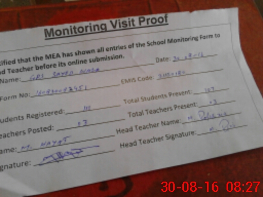 | Attendance Register | Head Teacher | MEA with School | Visit Proof |