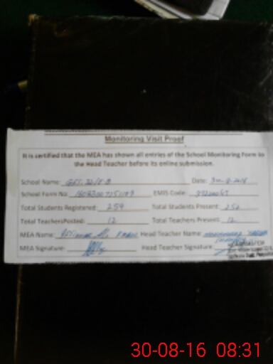 | Attendance Register | Head Teacher | MEA with School | Visit Proof |