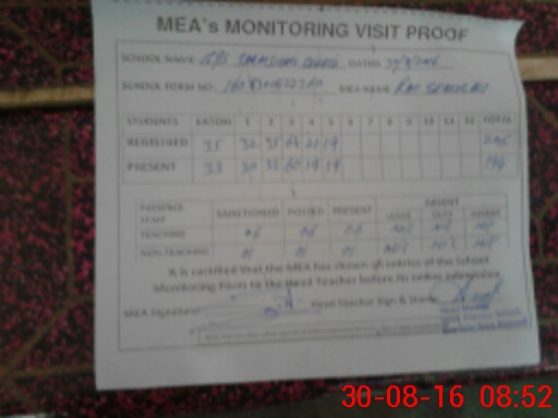 | Certified that this School was Inspected by the Undersigned MEA/DMO Today and the Information Stated Above is as Per Record. | |||||