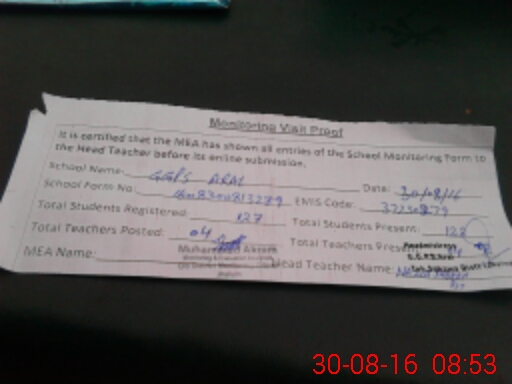| Attendance Register | Head Teacher | MEA with School | Visit Proof |