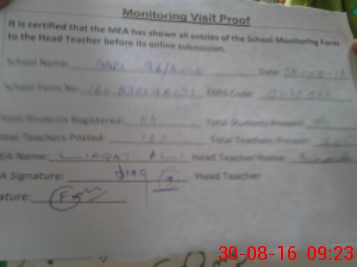 | Certified that this School was Inspected by the Undersigned MEA/DMO Today and the Information Stated Above is as Per Record. | |||||