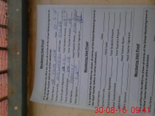 | Monitoring Date: 30-08-2016 | Start Time: 30-08-2016 09:04 AM | End Time: 30-08-2016 09:47 AM | Name of MEA: Ra**** Ah**** (D**** | |