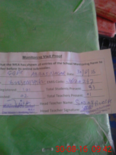 | EMIS Code: 36120247 | Name of School: GGPS ABBAS NAGAR MUZA JALALPUR KHAKHI | |||