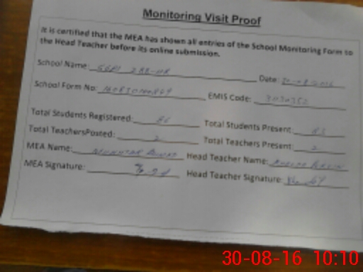 | Certified that this School was Inspected by the Undersigned MEA/DMO Today and the Information Stated Above is as Per Record. | |||||