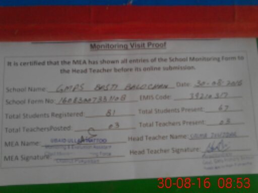 | EMIS Code: 39210317 | Name of School: GGPS BASTI BALOCHAN P/O MALKA HANS | |||