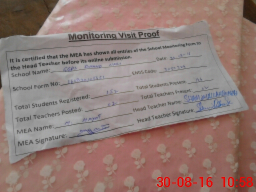| Certified that this School was Inspected by the Undersigned MEA/DMO Today and the Information Stated Above is as Per Record. | |||||