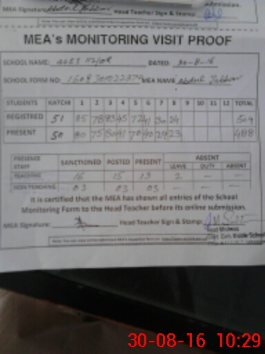 | Certified that this School was Inspected by the Undersigned MEA/DMO Today and the Information Stated Above is as Per Record. | |||||
