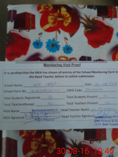| Certified that this School was Inspected by the Undersigned MEA/DMO Today and the Information Stated Above is as Per Record. | |||||
