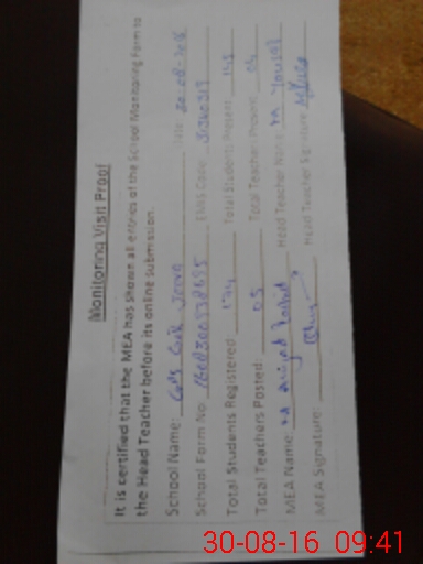 | Attendance Register | Head Teacher | MEA with School | Visit Proof |